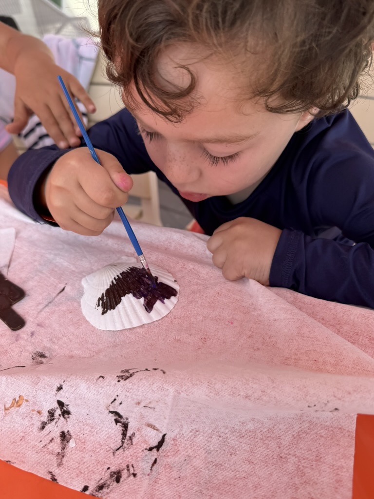 No. We use canopies on the sand, shaded deck areas for lunch/snacks/activities, plus air-conditioned indoor space when needed.